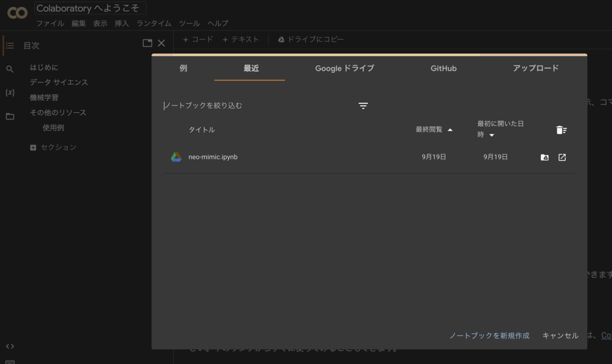 その解決策として、ローカルPCではなくクラウド上で同様に実行できるGoogle colab を利用する方法がある。利用の都度ノートブックと称する開発環境を新たに作って使い、終われば破棄する利用方法なので、設定を間違えたらどうしよう、動かなくなったらどうしよう、という不安からも解放される。
