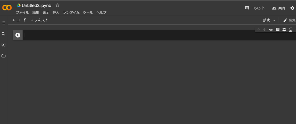 上の様にGoogle colabでノートブックを新規作成するとカーソル待ち状態にあるので、そこに下記のコードをコピペする。