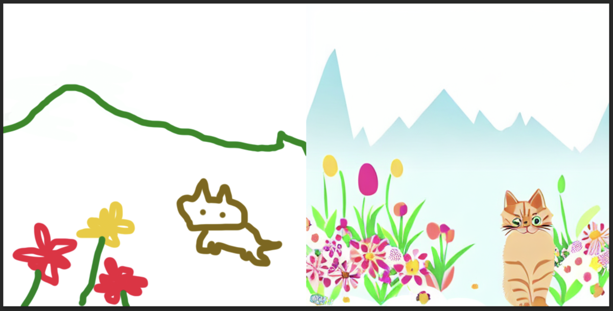 ここでは雑な手書きで、花が咲く庭にいる猫を描いてみた。注意点として画像は512x512ピクセルで作成すること。